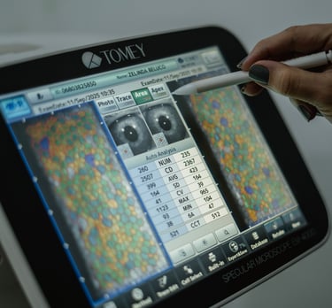 Avalia as células endoteliais da córnea, responsáveis por sua transparência. É Importante no pré-operatório de cirurgias oculares e no acompanhamento de doenças corneanas.